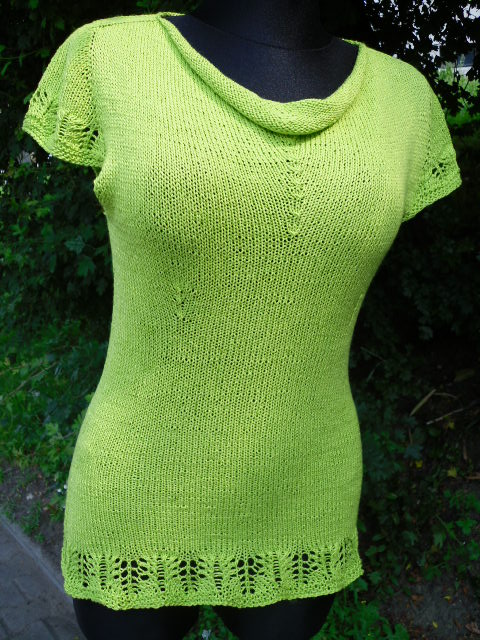 Mao zaprojektowała piękny letni top Stone. Oto moja wersja z limonkowej włóczki Summer YarnArtu - 20 dkg na drutach KP nr 3,5.